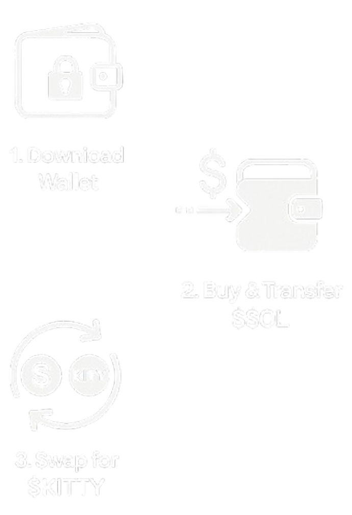 Head over to Jupiter or Raydium to swap your $SOL for $KITTY. You can also buy $KITTY directly on top centralized exchanges like Crypto.com, KuCoin, and Bybit — it's already live and trading!